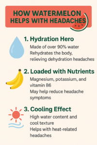 The hypothesis that watermelon may relieve headaches is based on its ability to address some of these underlying causes.